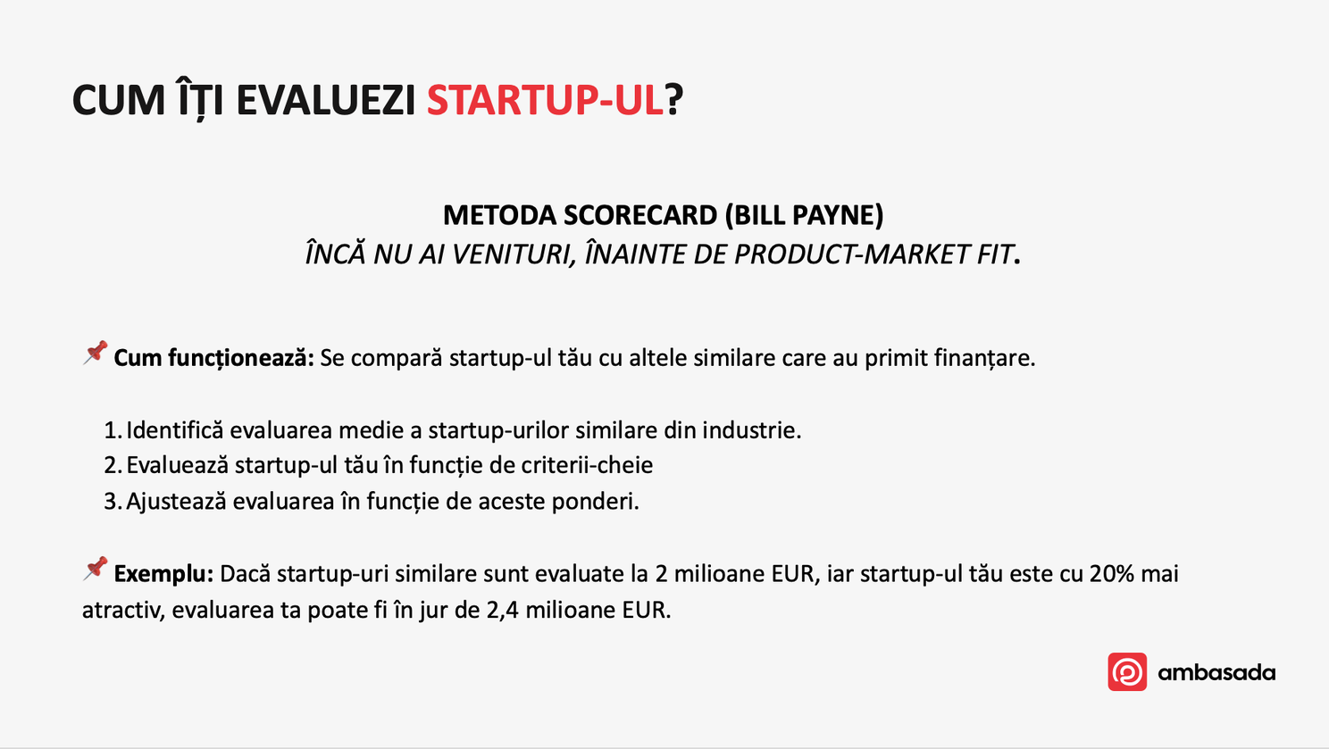 Teodora and Cătălin presented the methods commonly used by investors to evaluate a startup: